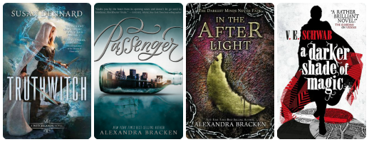 Truthwitch by Susan Dennard, Passenger by Alexandra Bracken, In the Afterlight by Alexandra Bracken & A Darker Shade of Magic by V.E. Schwab
