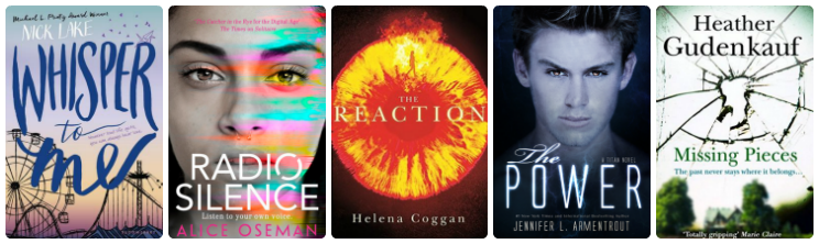 Whisper to Me by Nick Lake, Radio Silence by Alice Oseman, The Reaction by Helena Coggan, The Power by Jennifer L. Armentrout & Missing Pieces by Heather Gudenkauf